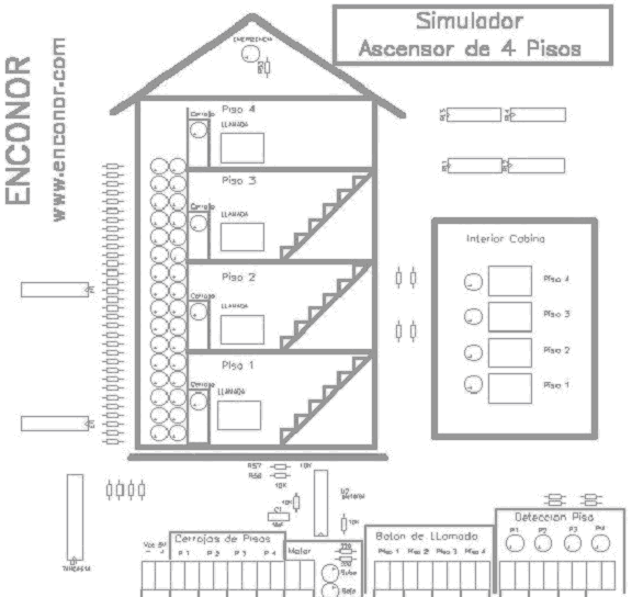 ENCONOR, simula la subida, bajada y paro de un ascensor