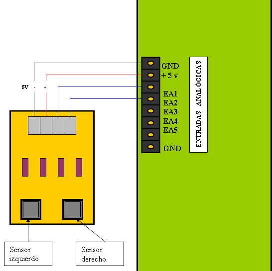 se conecta a dos entradas analógicas de la controladora